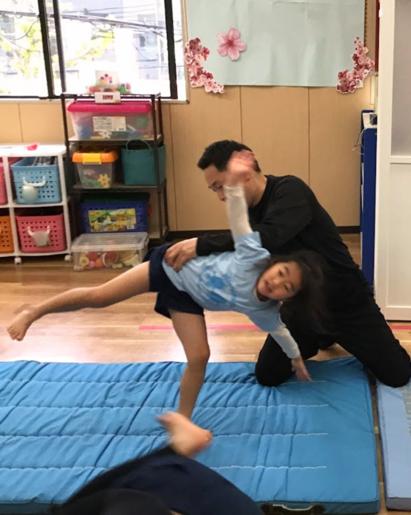 PEクラスでは、K2は側転、K1は後転にチャレンジ!